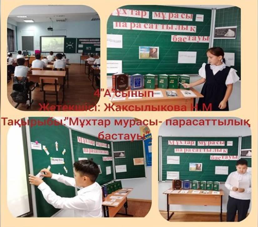 〽️Мектебімізде қазақтың ұлы жазушысы, қоғам қайраткері, ғұлама ғалым Мұхтар Әуезовтың 125 жылдығына орай 1-11 сынып оқушыларына