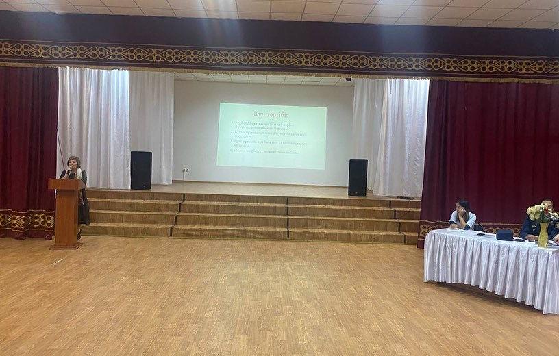 1. 2022-2023 оқу жылындағы оқу-тәрбие жұмыстарының ұйымдастырылуы жөнінде мектеп директоры: Мухтарханова Раушан Абайкановна сөз бастады.