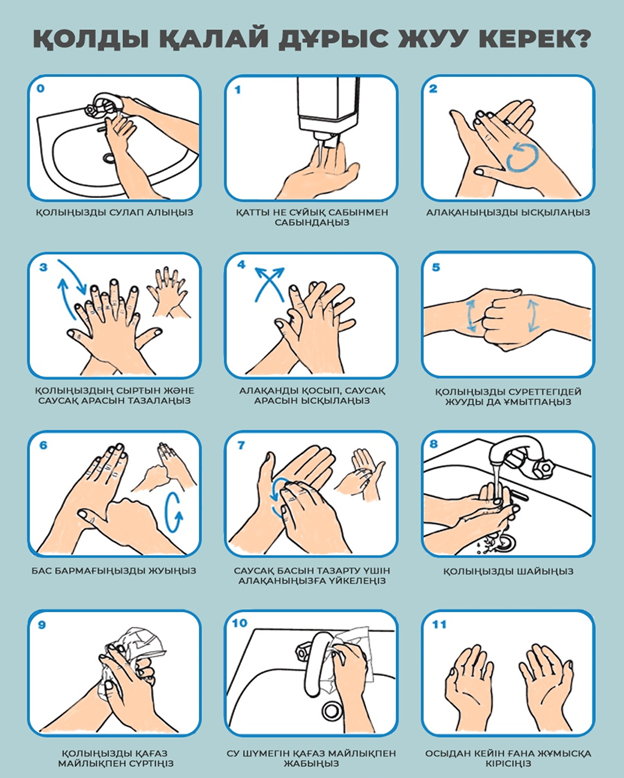 Қолды жылы сумен және сабынмен жуу керек. Бұл организмді түрлі вирустардан сақтайды.