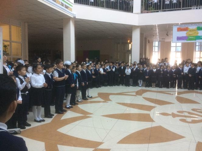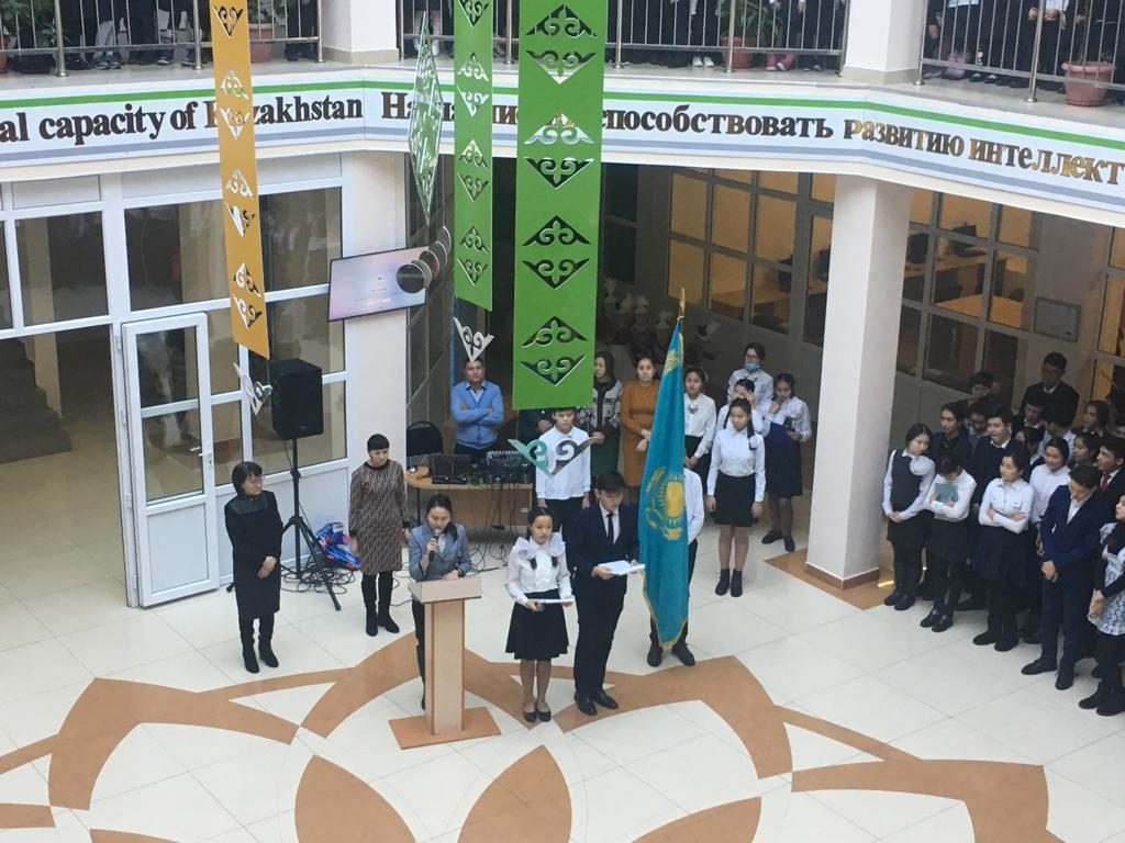 «Елбасы-ел тірегі» салтанатты жиын ұйымдастырылды. Елбасына арналған «Елбасы» әнімен ашылып, құттықтау сөз мектеп директоры Р.А Мухтархановаға берілді. Мемлекеттік туымыз кіргізіліп, мемлекеттік әнұран ойналды. Оқушылардың Елбасына деген өлеңдері ұсынылды.
