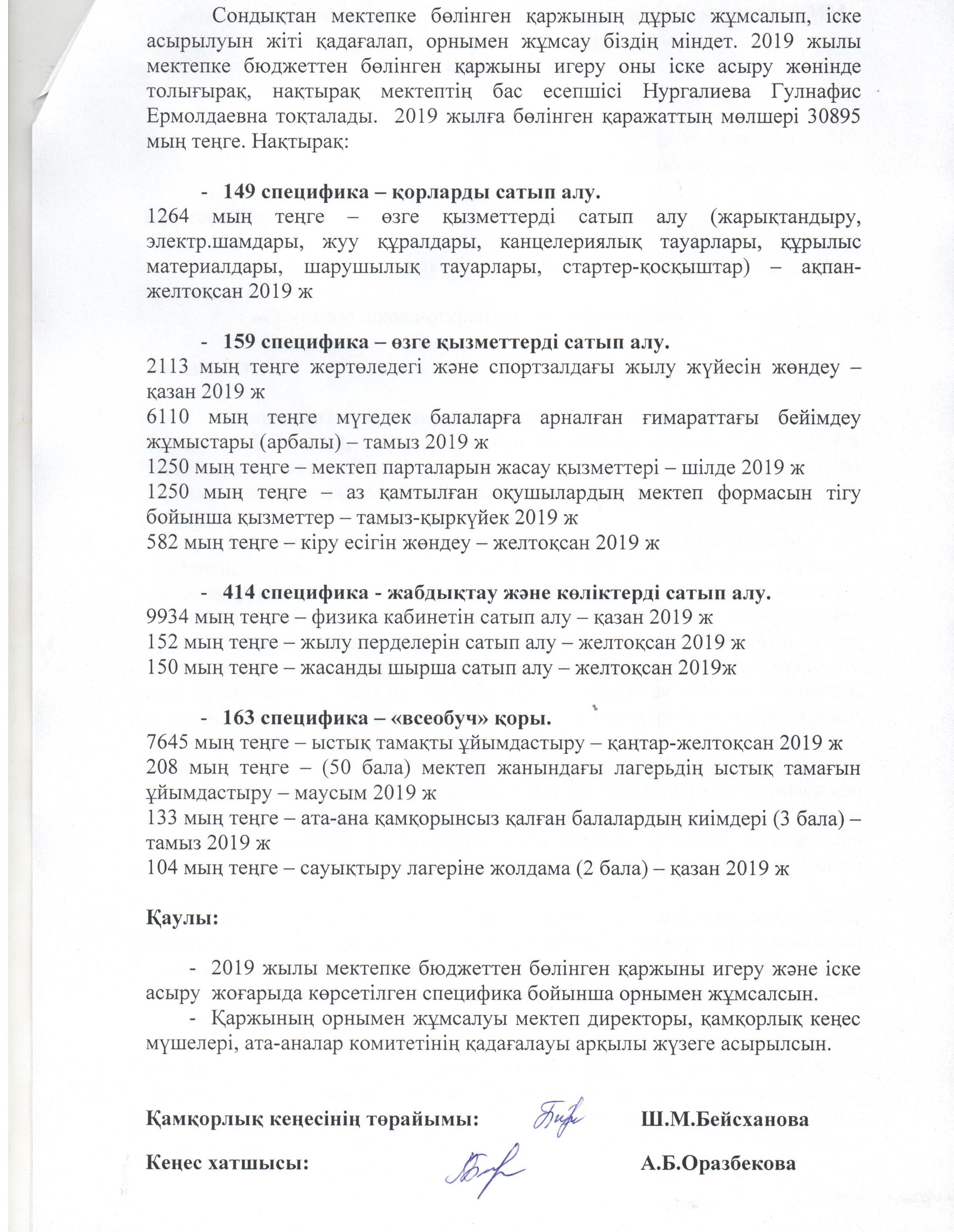 Мектеп директорының есеп беру жиналысы. Хаттама №11.
