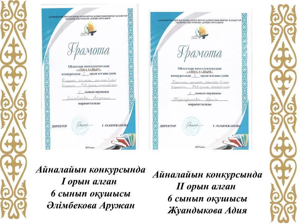 Айналайын интеллектуалдық конкрустың жеңімпаздары! » Шығыс Қазақстан облысы білім басқармасы Өскемен қаласы бойынша білім бөлімінің «№47 жалпы білім беретін мектеп» коммуналдық мемлекеттік мекемесі