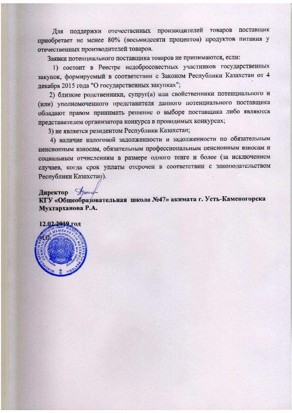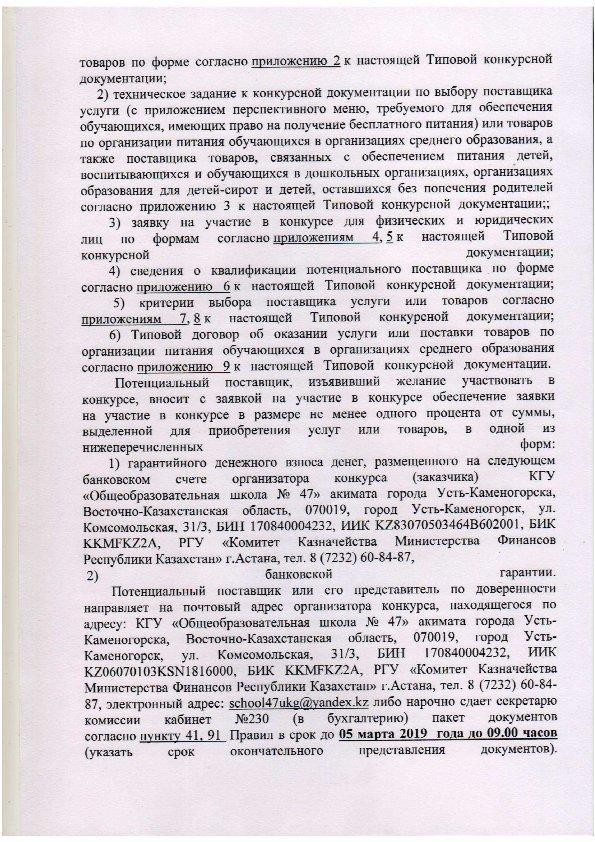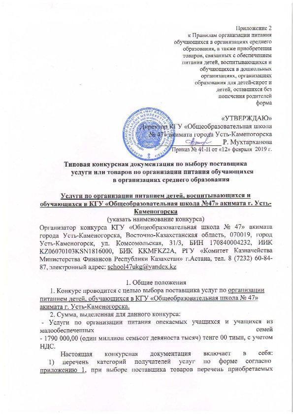 Конкурсная документация » Шығыс Қазақстан облысы білім басқармасы Өскемен қаласы бойынша білім бөлімінің «№47 жалпы білім беретін мектеп» коммуналдық мемлекеттік мекемесі