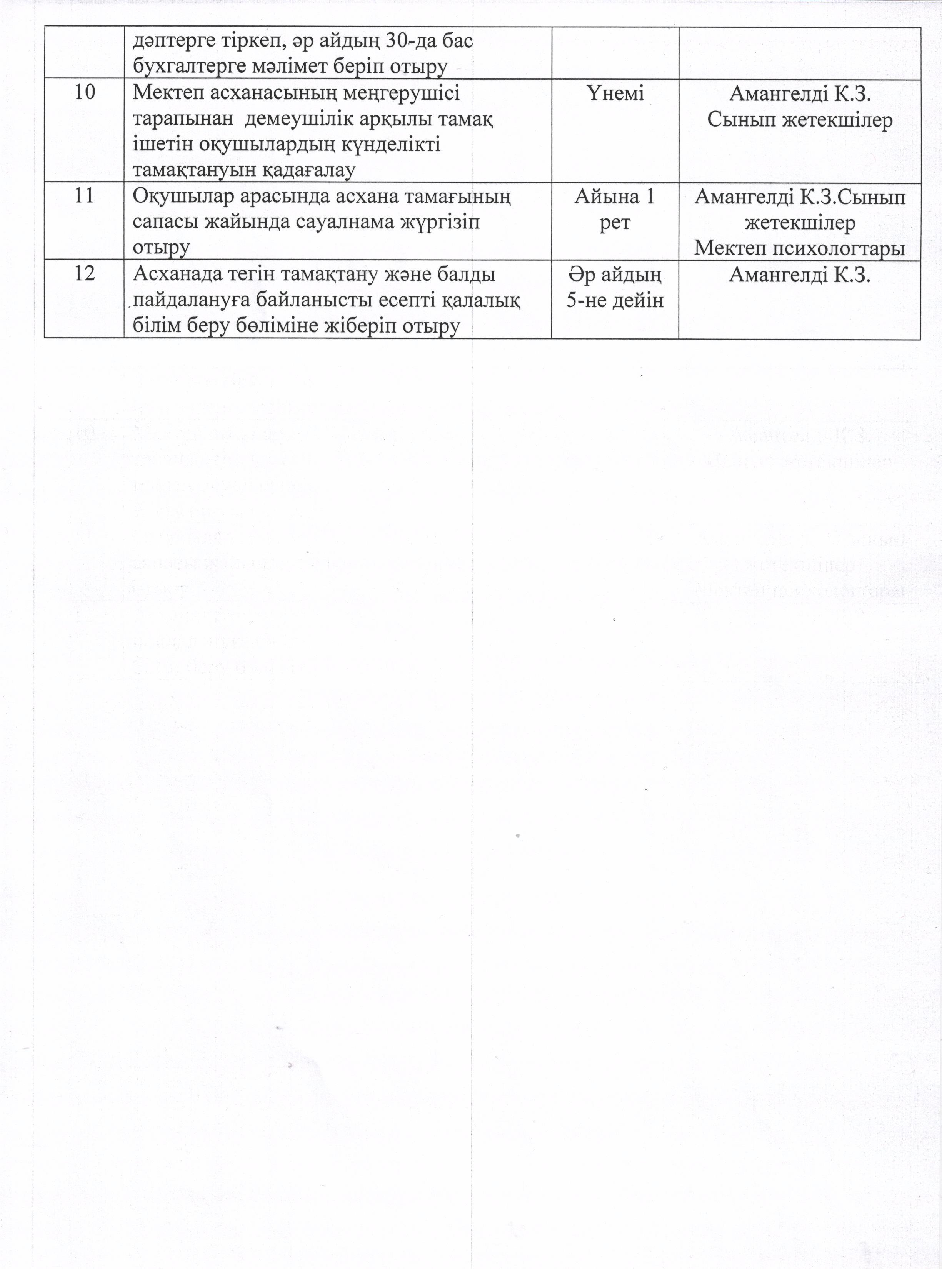 06 февраль 2019 0 1 2 3 4 5 Оқушыларды мектеп асханасынан ыстық тамақпен қамтамасыз етудің 2018-2019 оқу жылындағы жұмыс жоспары