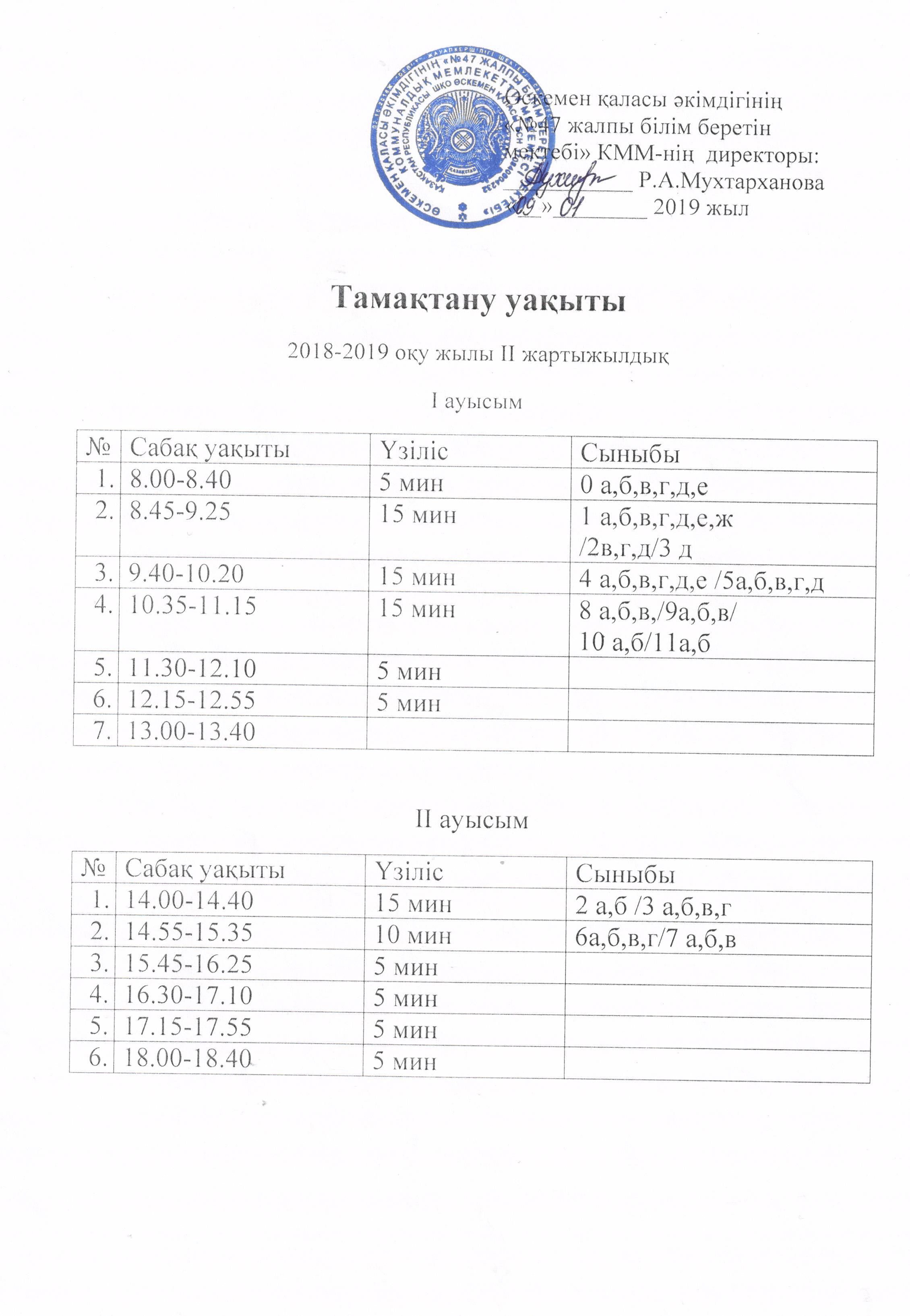 Тамақтану уақыты 2018-2019 оқу жылы II жартыжылдық » Шығыс Қазақстан облысы білім басқармасы Өскемен қаласы бойынша білім бөлімінің «№47 жалпы білім беретін мектеп» коммуналдық мемлекеттік мекемесі