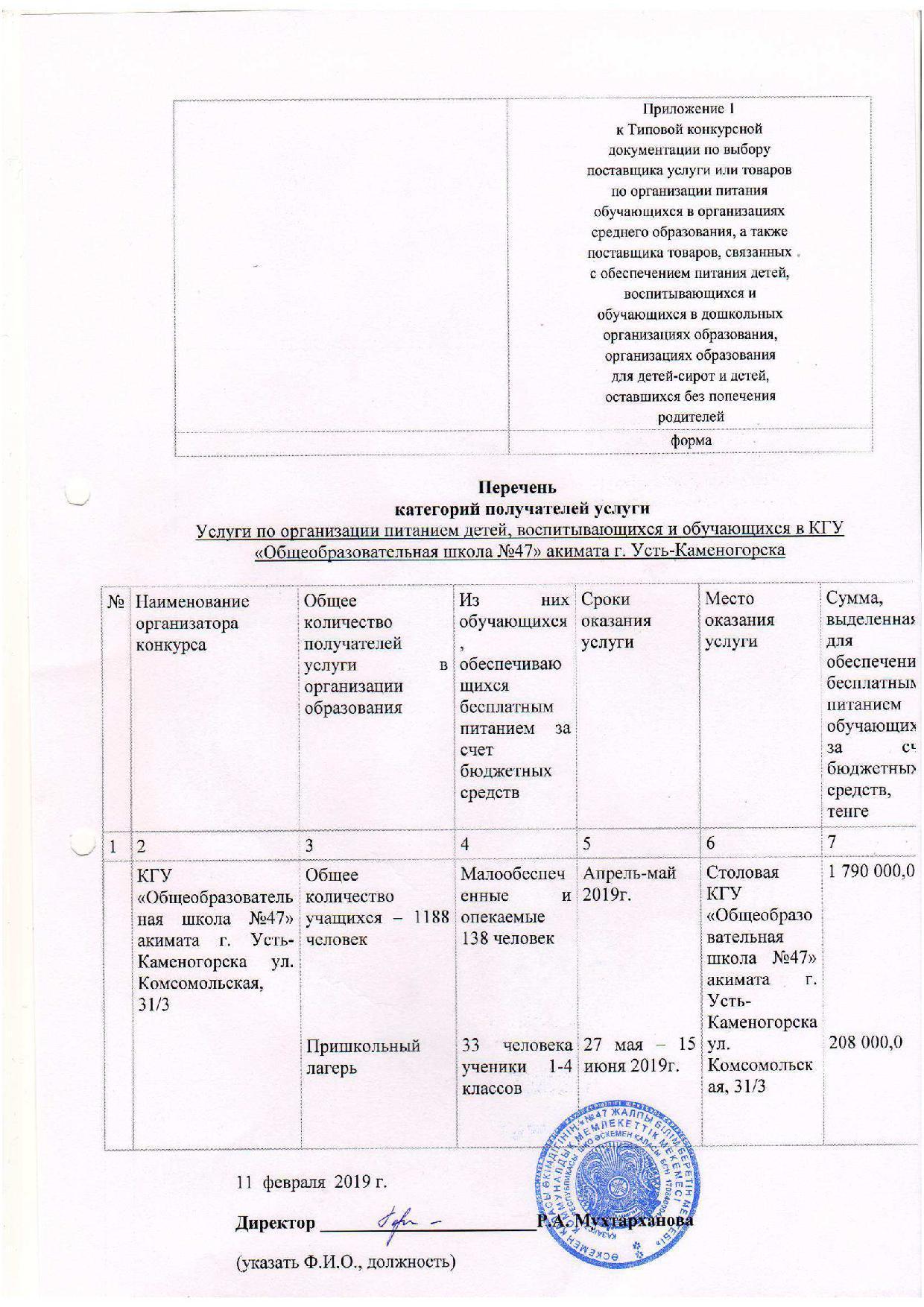 План приобретения услуг. Перечень категории получателей услуги. Меню. График посещения столовой учащимися КГУ"Общеобразовательная школа №47" акимата города Усть-Каменогорска.